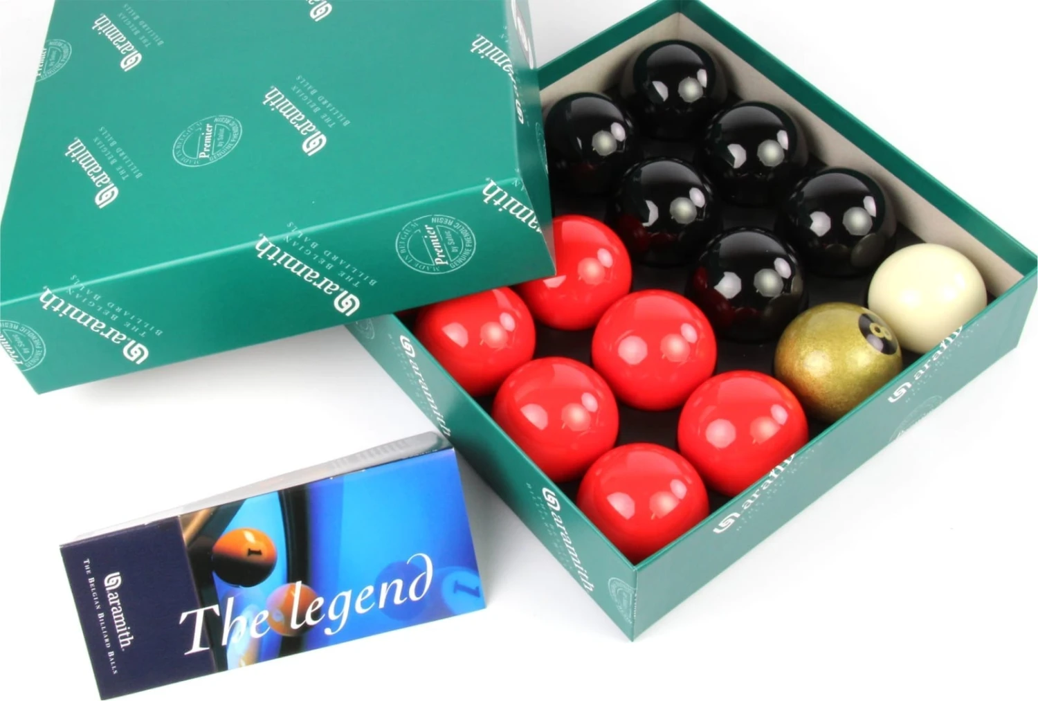 - 2″ Aramith Premier red & Black pool balls – Aramith Premier balls are used by major tournaments worldwide