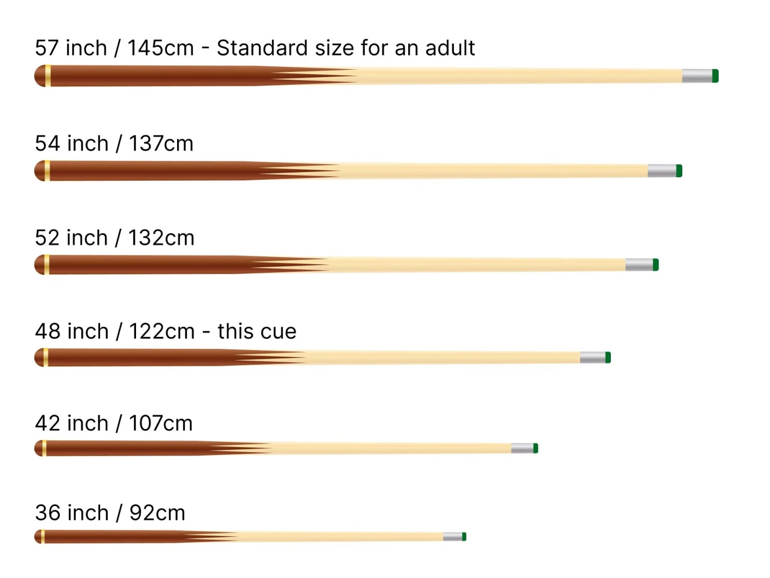 - 48 inch 2pc cue with centre joint (122cm approx.)
